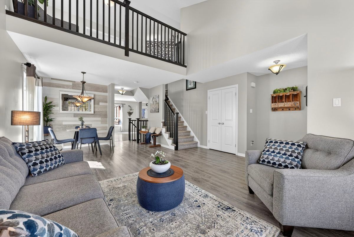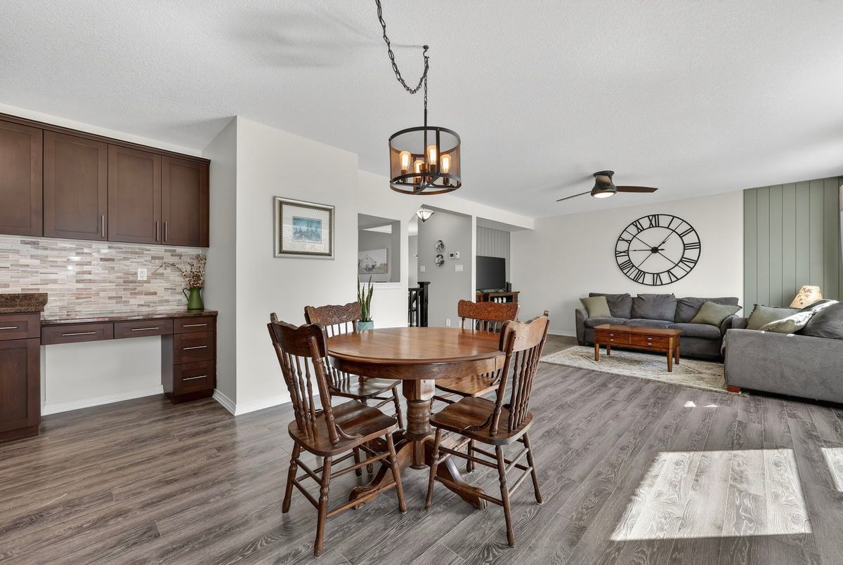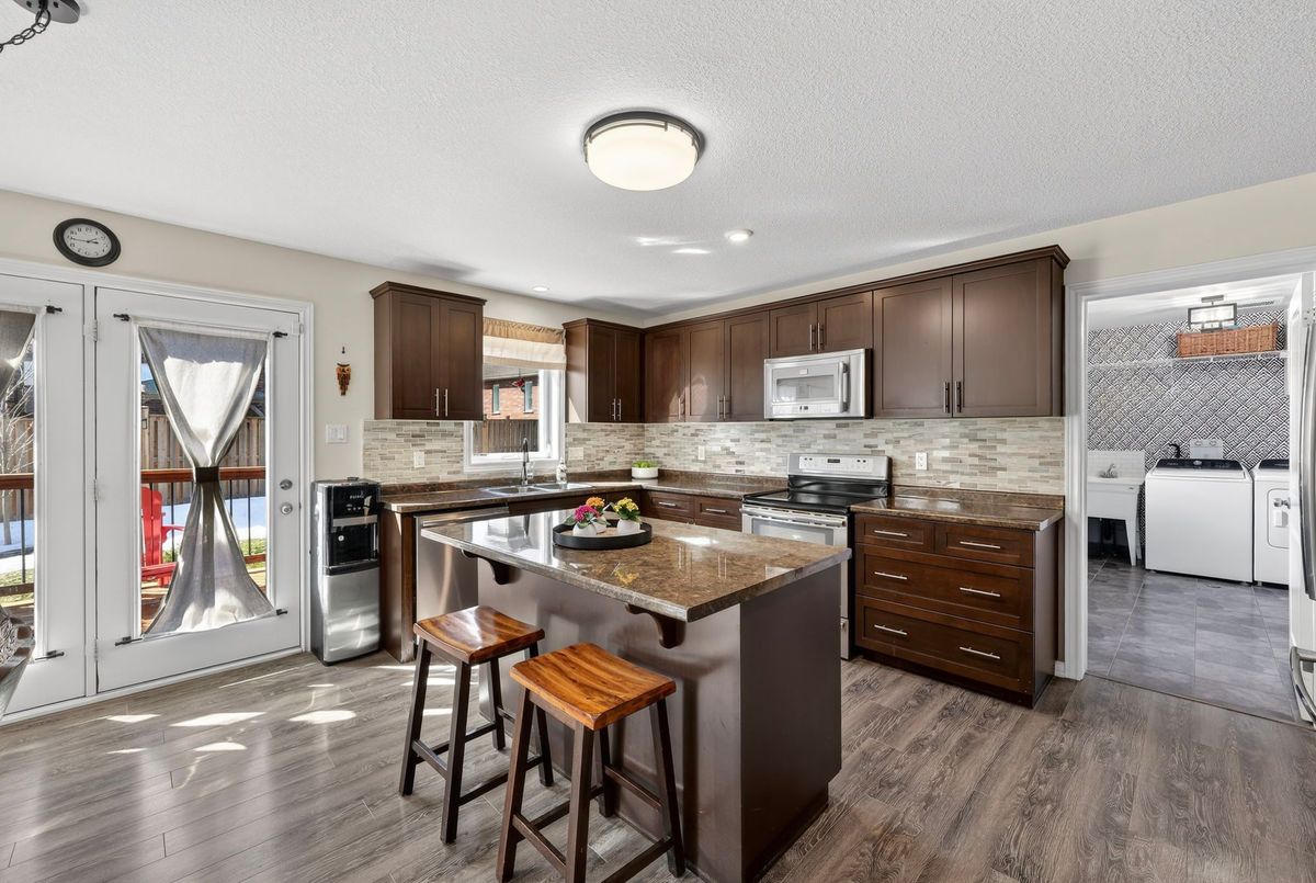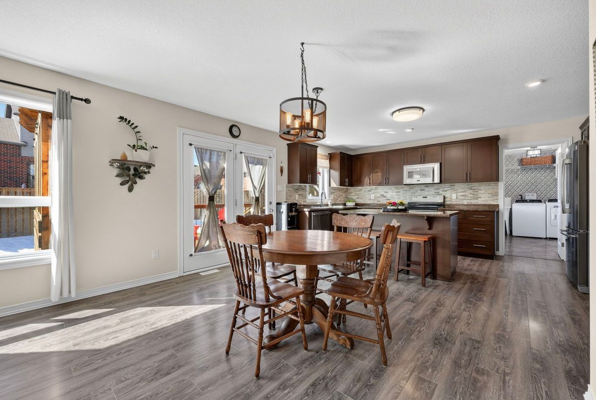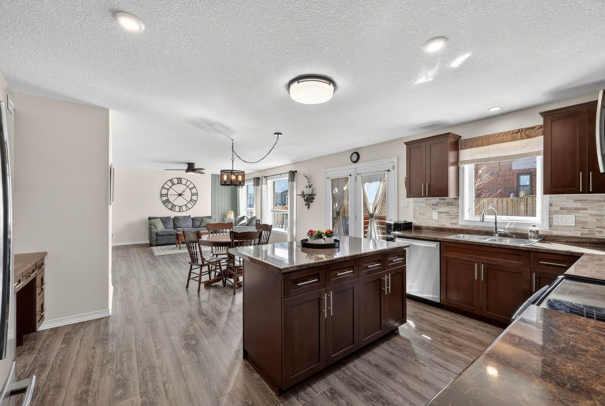 Welcome to 14 Sandringham Circle - an exceptional family home located in the highly sought after West End of Orangeville, just minutes from excellent schools, shopping, parks, and more. This spacious family home offers 2,370 sq. ft. of above grade living space, plus a professionally finished basement, providing plenty of room for growing families and entertaining. The main floor features a bright and spacious layout highlighted by a combined living and dining room with soaring cathedral ceilings open to the loft above. A separate family room offers a cozy space to relax, while the expansive eat-in kitchen is perfect for gatherings and everyday living, complete with a centre island, stainless steel appliances, backsplash, and pot lighting. Multiple walkouts lead to the backyard, and the main floor also offers the convenience of a laundry room and direct garage access. Upstairs, you will find three generously sized bedrooms along with a versatile loft space, perfect for a home office, play area, or additional lounge. The primary bedroom offers a private ensuite bathroom and walk-in closet. The two additional bedrooms are also well sized, with one featuring an extra large layout. The fully finished basement adds even more incredible flexibility, featuring a fourth bedroom, a large living area, second kitchen, massive cold room, and a walk-up to the garage that provides the potential for separate access. Step outside to a backyard designed for both relaxation and entertaining, complete with a deck, gazebo, and hot tub - perfect for hosting family and friends. This home showcases true pride of ownership and offers numerous updates and thoughtful touches throughout. Additional updates include: Water Softener (2024), Freshly Painted (2024), Clothes Washer & Clothes Dryer (2023), Hot tub & Landscaping.